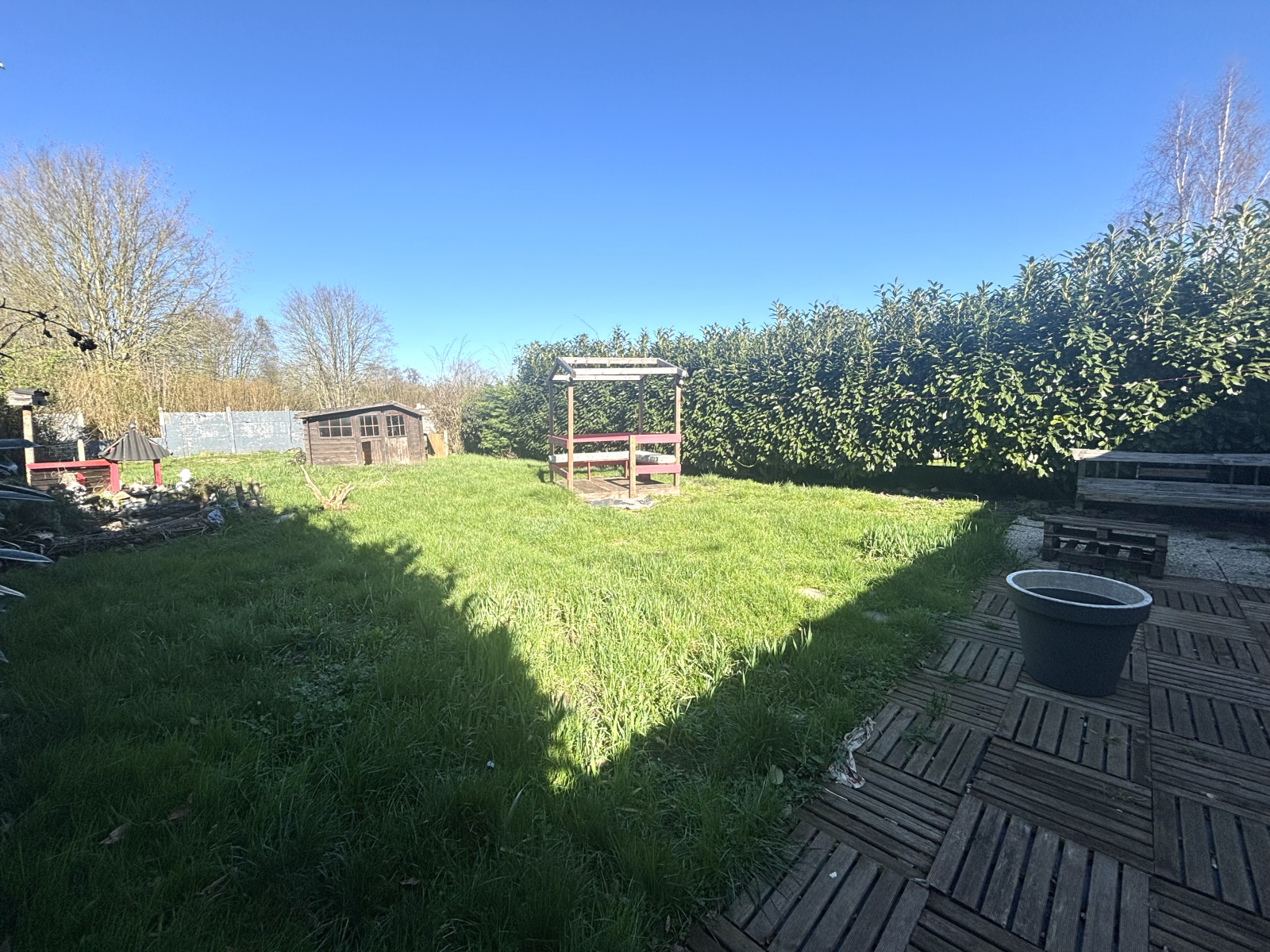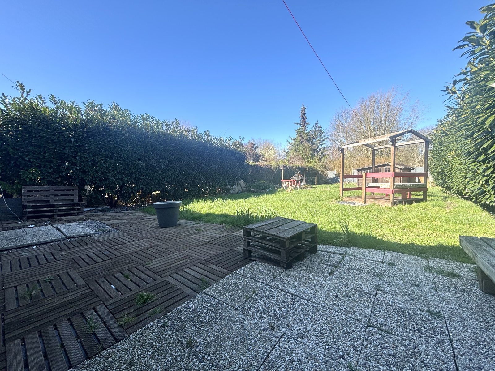 Coté extérieur, un jardin bien orienté de plus de 400m2 avec terrasse.