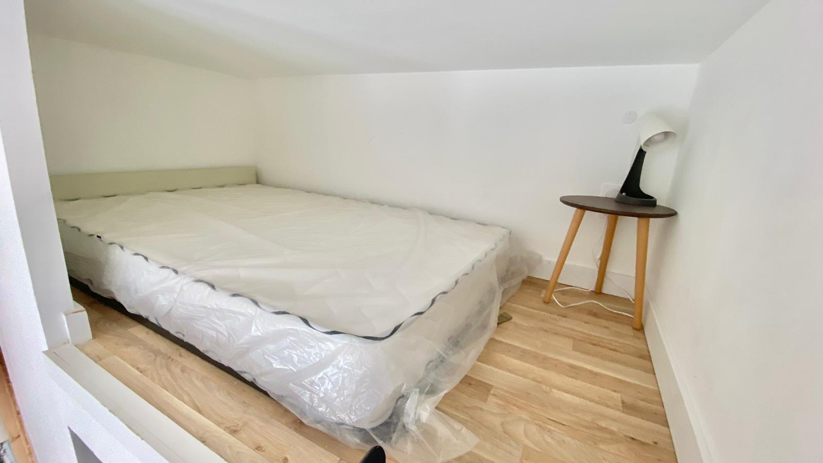 Vous trouverez à l'intérieur un espace séjour très lumineux comprenant son canapé, sa table basse, un bureau, une chaise, un dressing, ainsi que son coin nuit en mezzanine avec son lit 120cm.