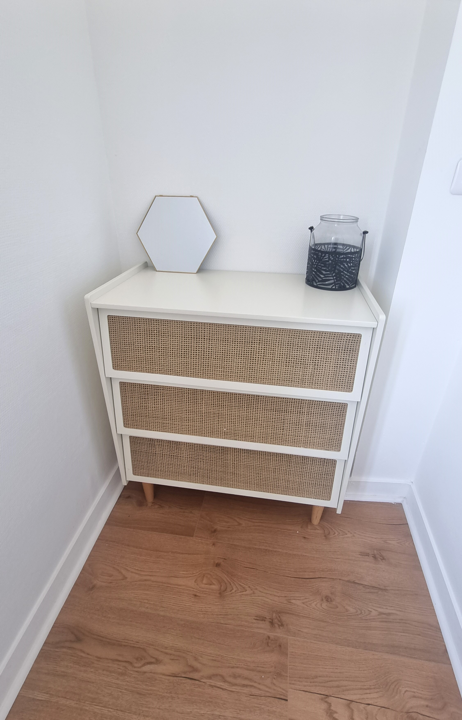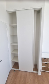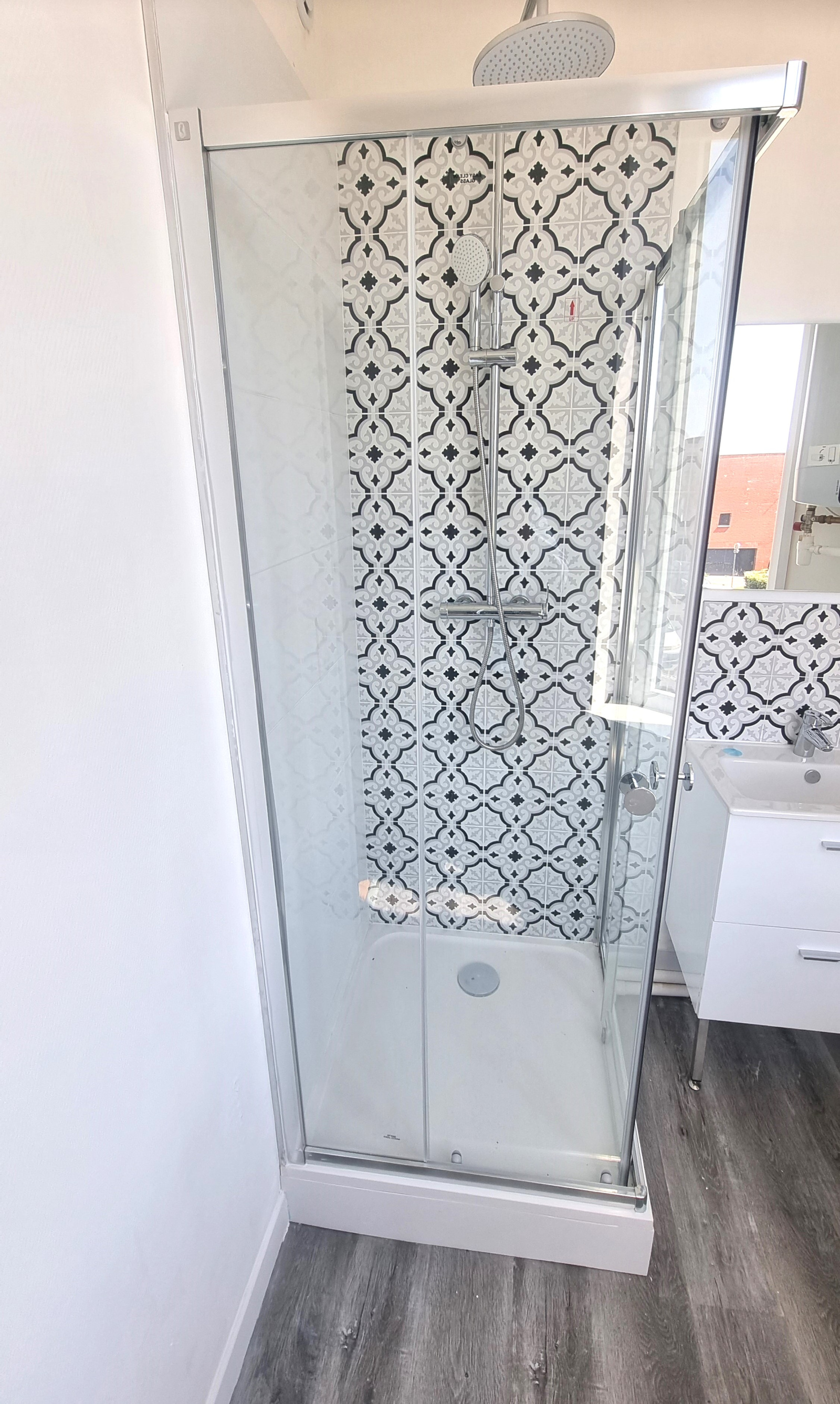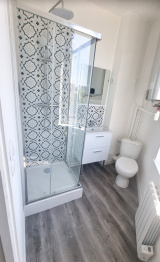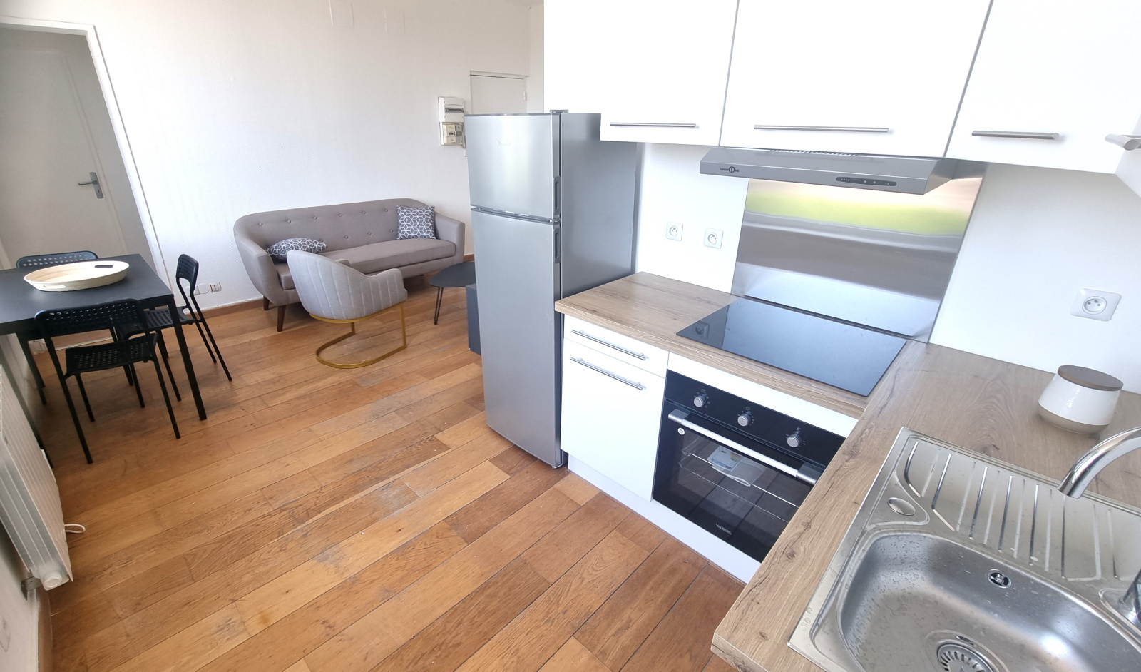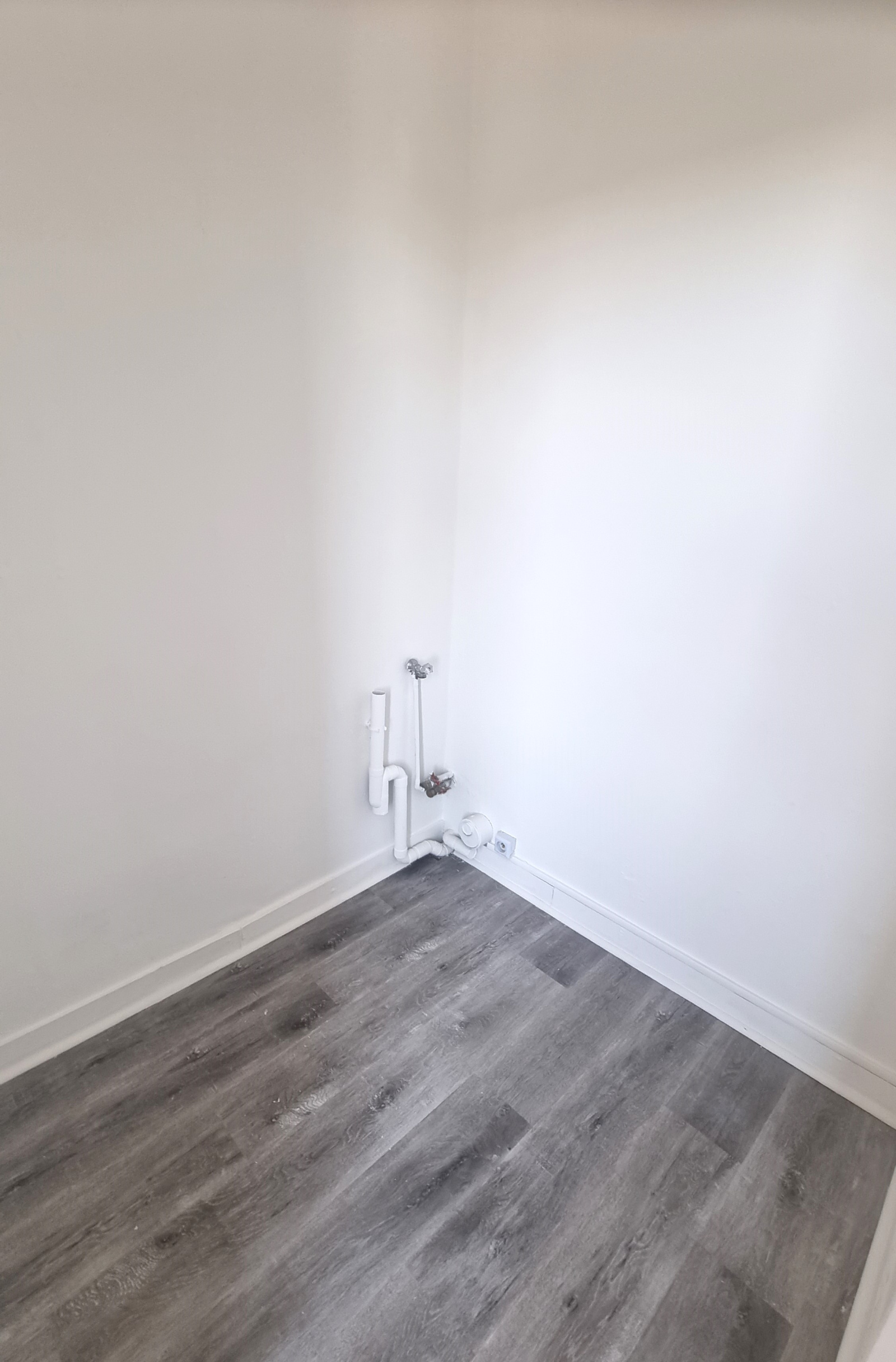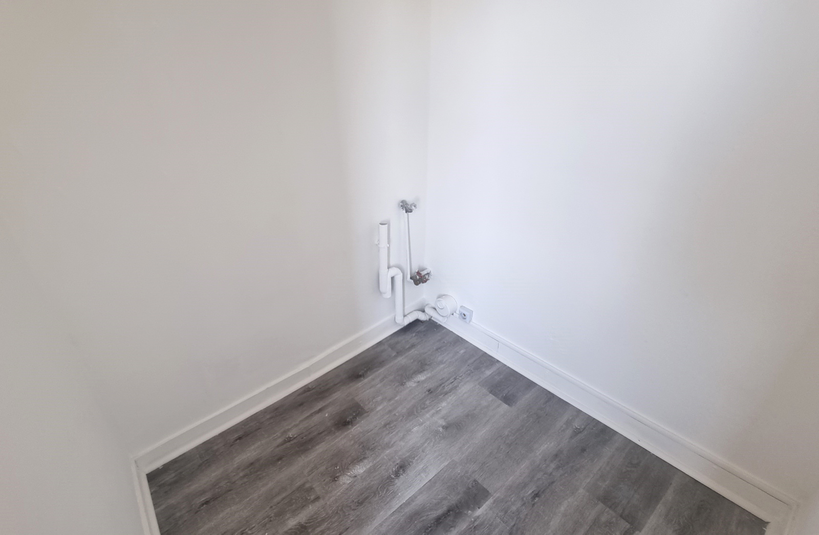 Equipement : Plaque de cuisson vitro céramique, four, frigo, et un emplacement pour lave-linge.