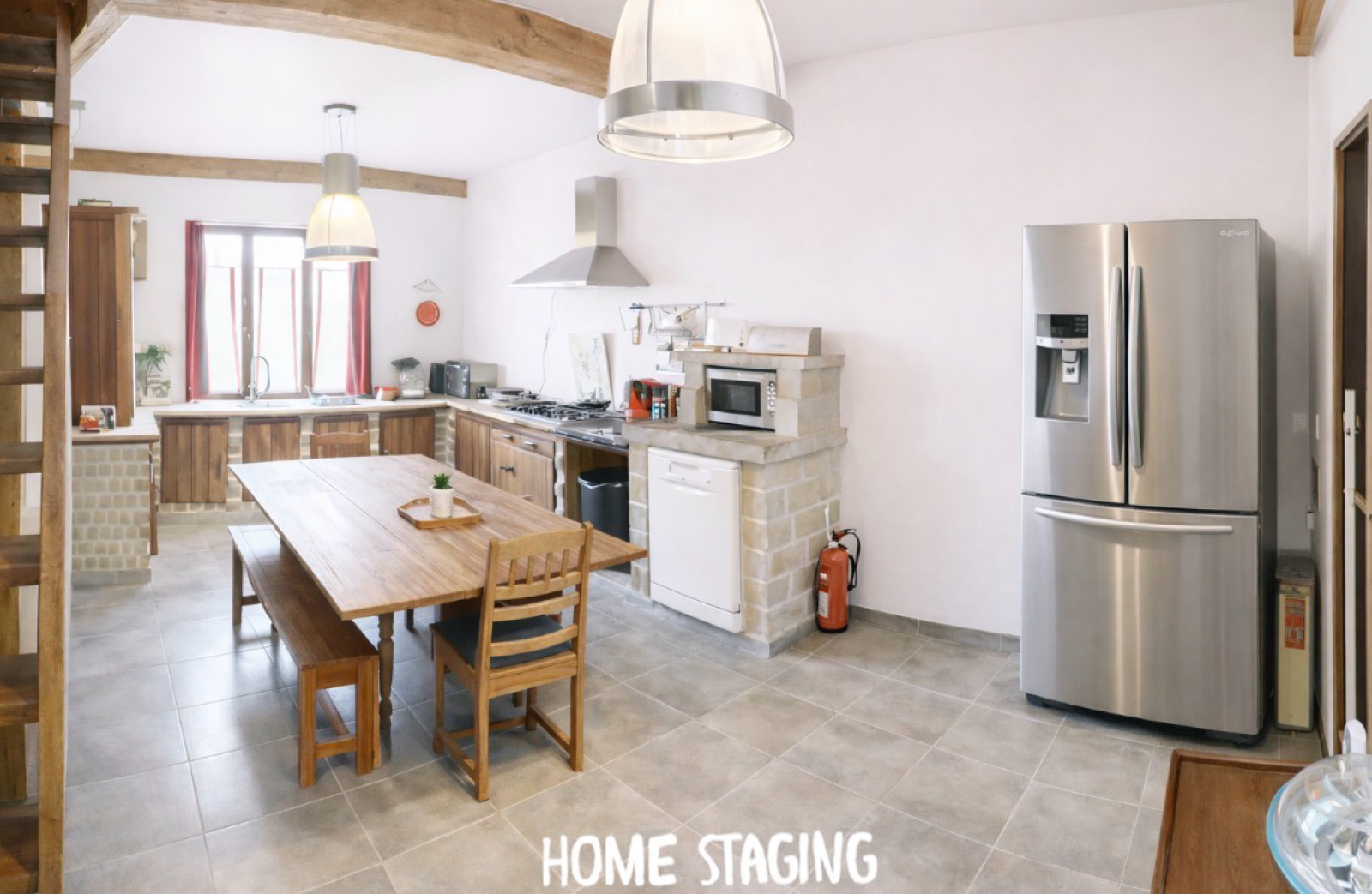Une cuisine ouverte de 25m2 , une salle d'eau de 8m2 et un Wc séparé