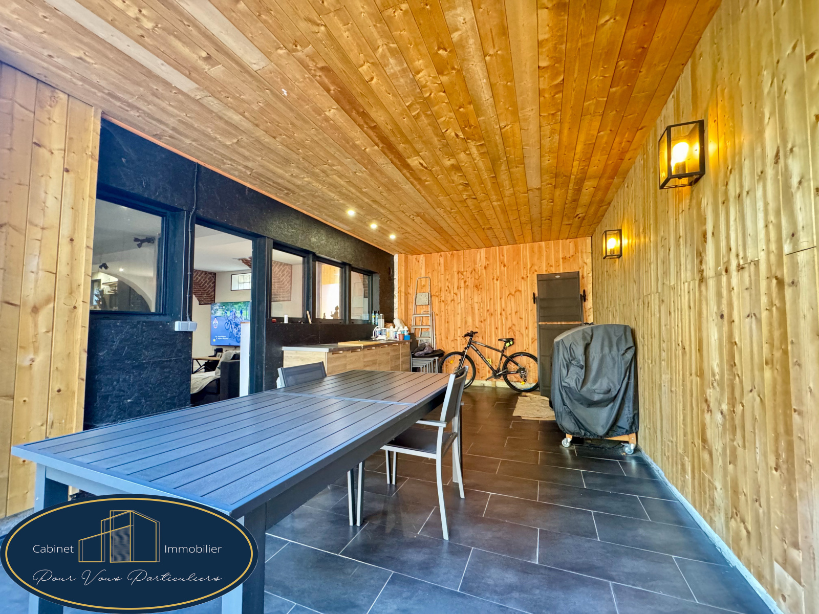 Côté extérieur une terrasse couverte et carrelée de 20m2 et un espace loggia carrelée de 30m2
