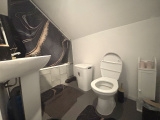 A l'étage, un appartement de type T4 loué à la location nue 700€ HC/ mois.